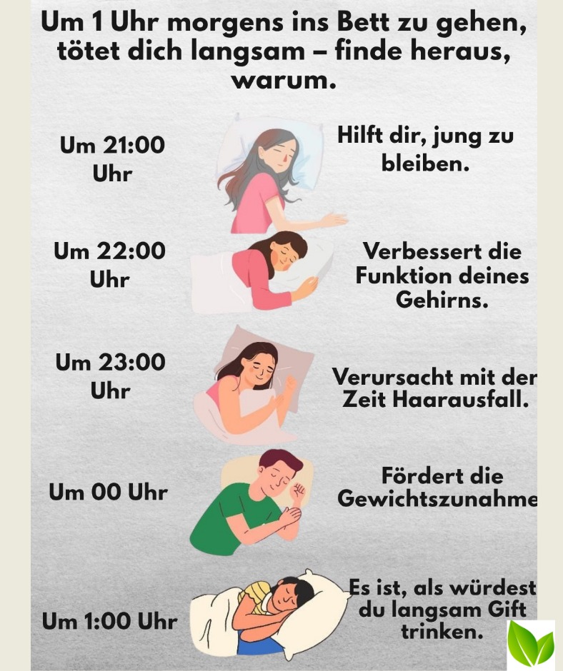 🌙✨ Wer regelmäßig vor 1 Uhr ins Bett geht, unterstützt seinen Biorhythmus, seine Leistungsfähigkeit und seine Gesundheit.