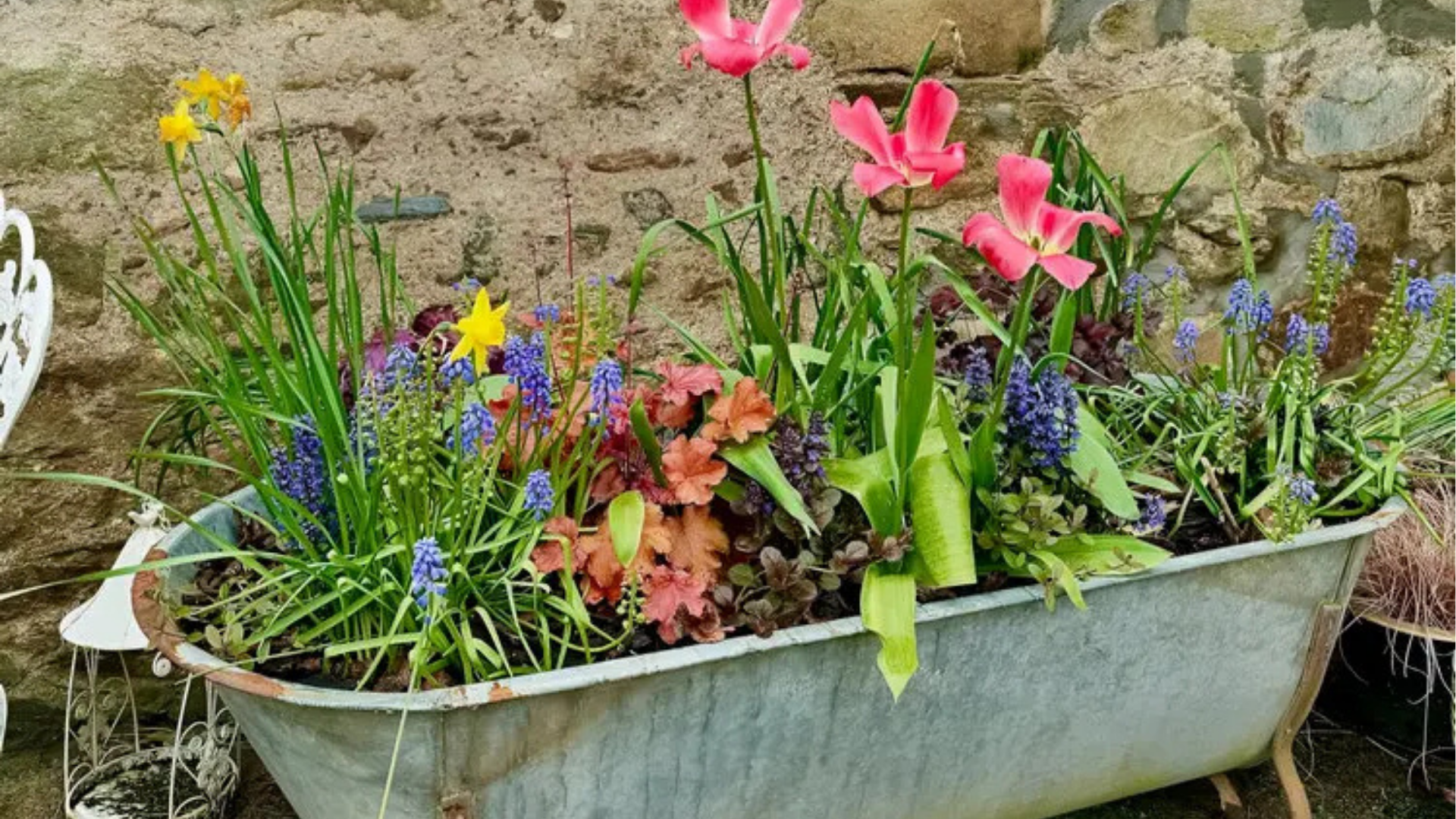 Die Badewanne eignet sich hervorragend für Pflanzen, die nicht sehr tief wurzeln, aber eine gute Bodenfeuchtigkeit benötigen.