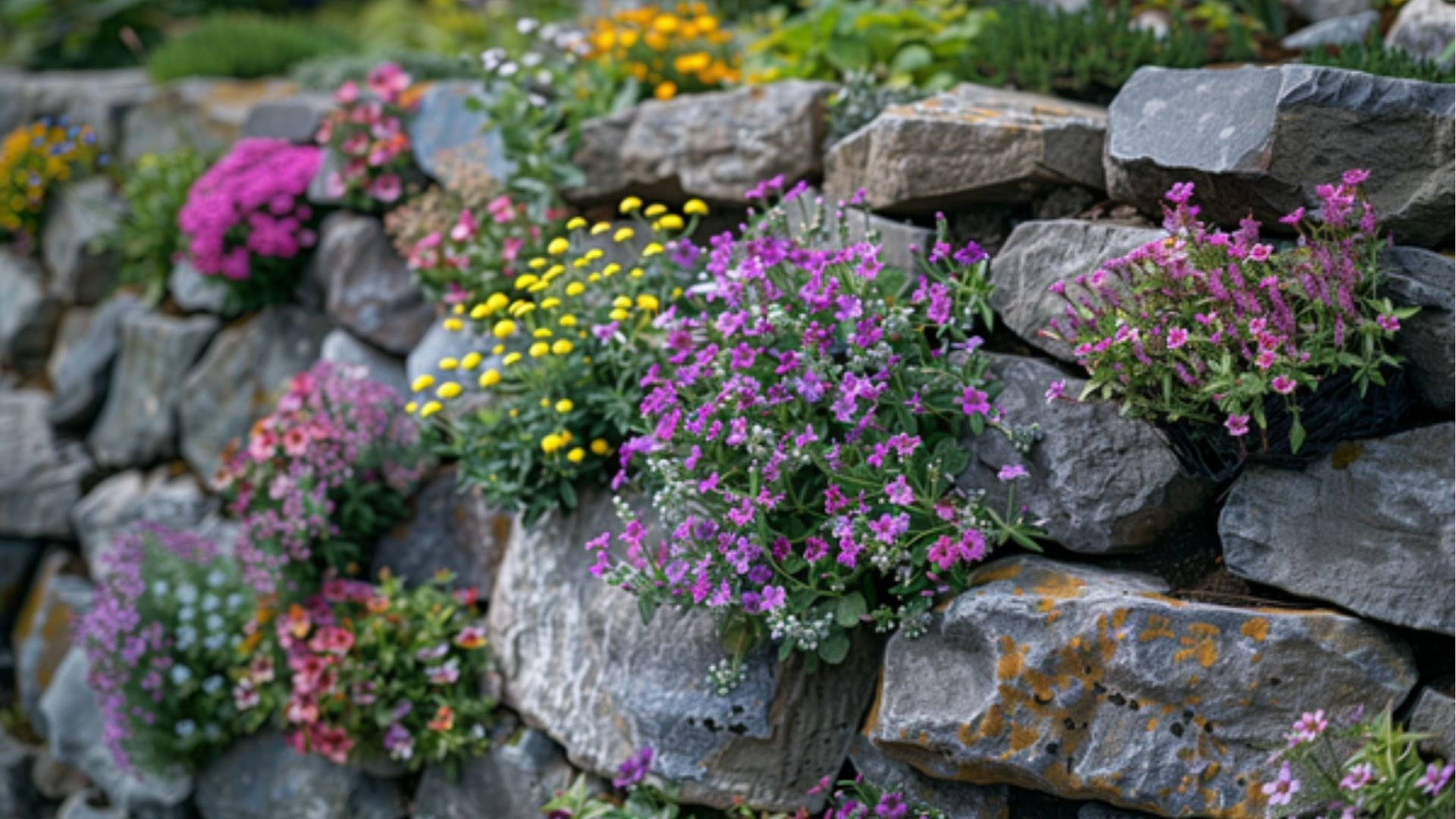 Manche Pflanzen wollen nicht nur kriechen, sie wollen hoch hinaus – oder besser gesagt: tief hinunter. Wenn deine Mauer etwas höher ist, sehen hängende Pflanzen einfach spektakulär aus. Sie brechen die harten Kanten des Gesteins auf und lassen alles viel weicher und natürlicher wirken.
