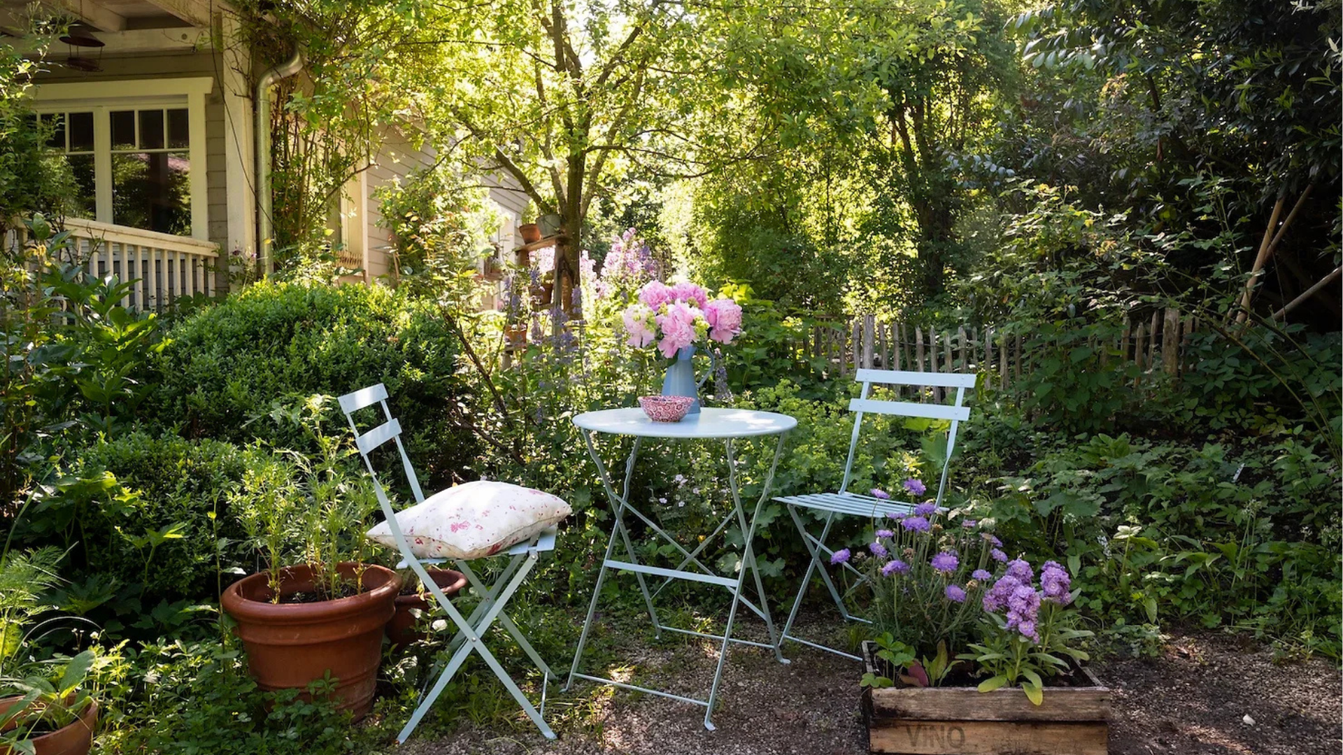 Ein Cottage Garden ist ein Ort zum Träumen. Ein alter Eisenstuhl, eine Holzbank unter einer Kletterrose oder ein kleiner Pavillon – solche Plätze laden zum Verweilen ein.