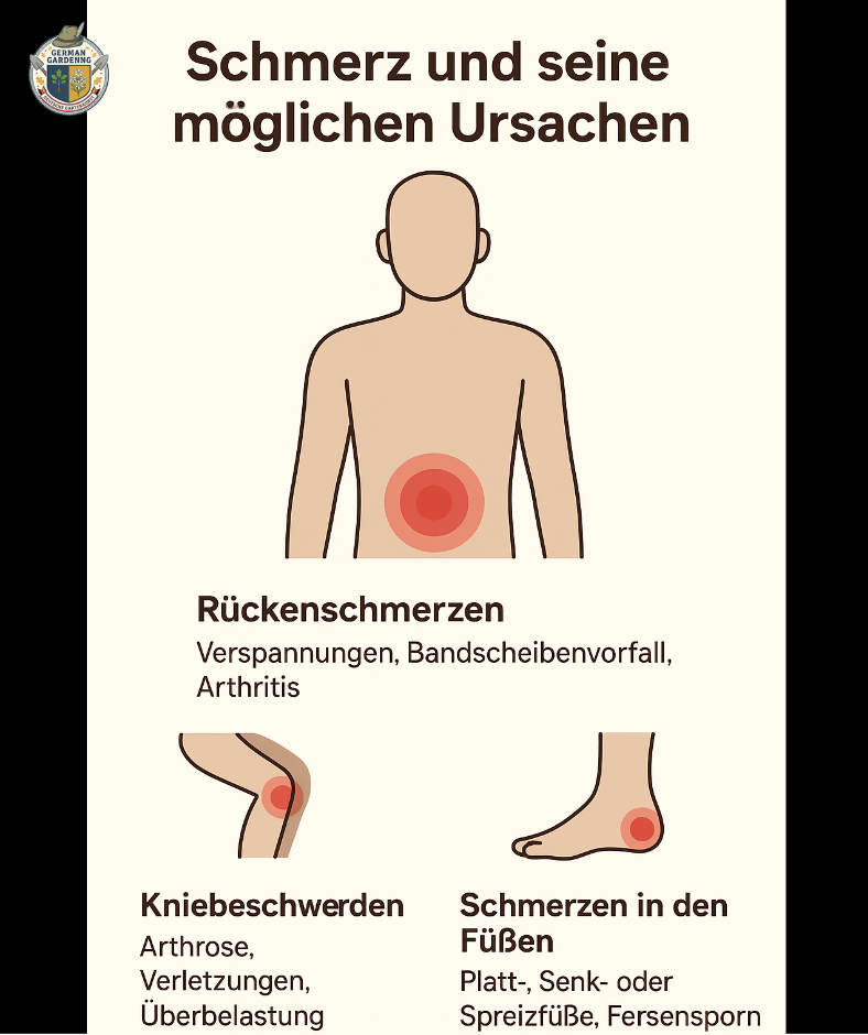 Hier ist eine Übersicht der häufigen Schmerzpunkte laut Infografik und deren mögliche Ursachen: