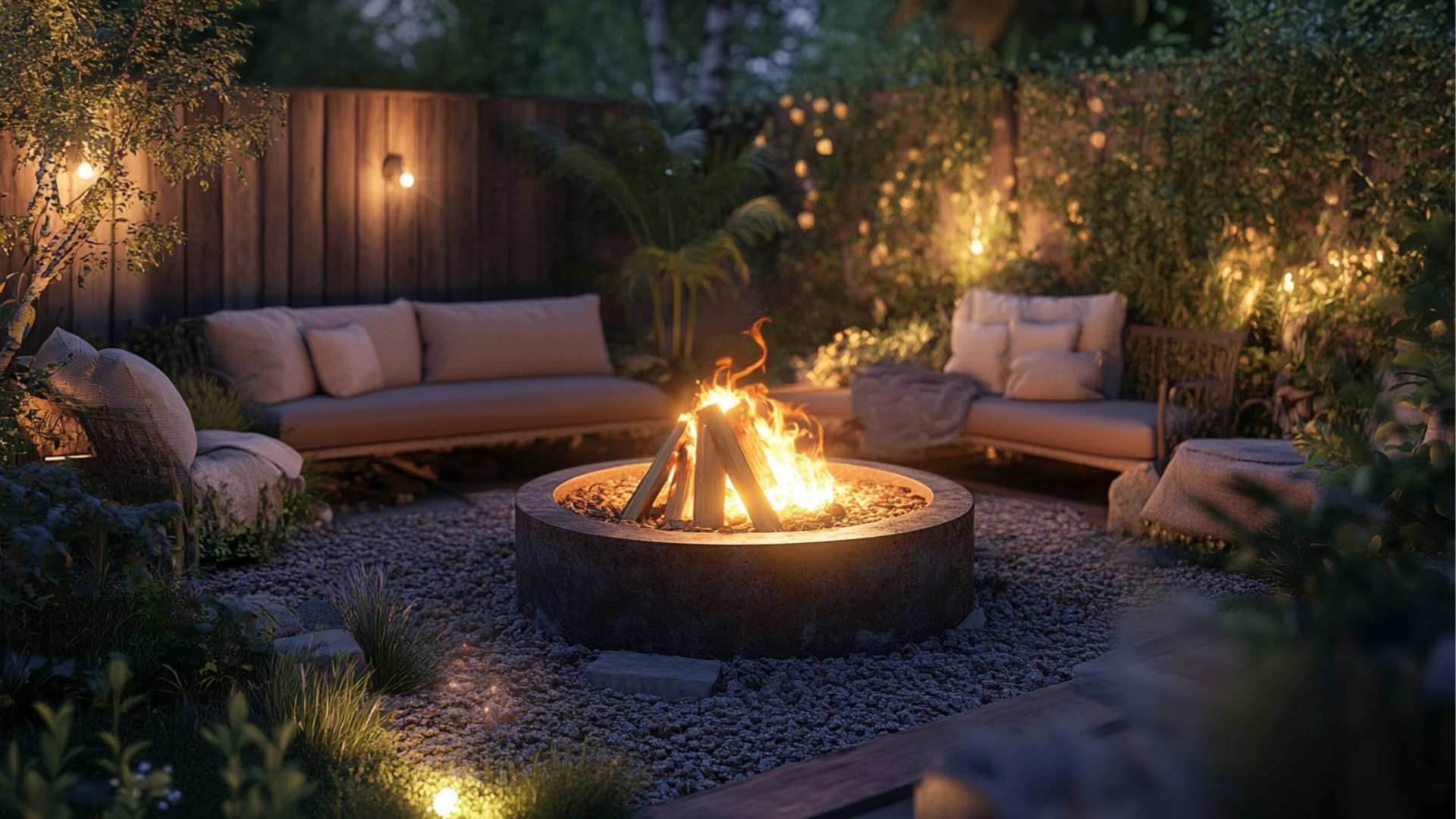 Wenn du es minimalistisch magst, reicht manchmal schon das Licht des Feuers selbst – es macht den Garten lebendig, ohne viel Dekoration.