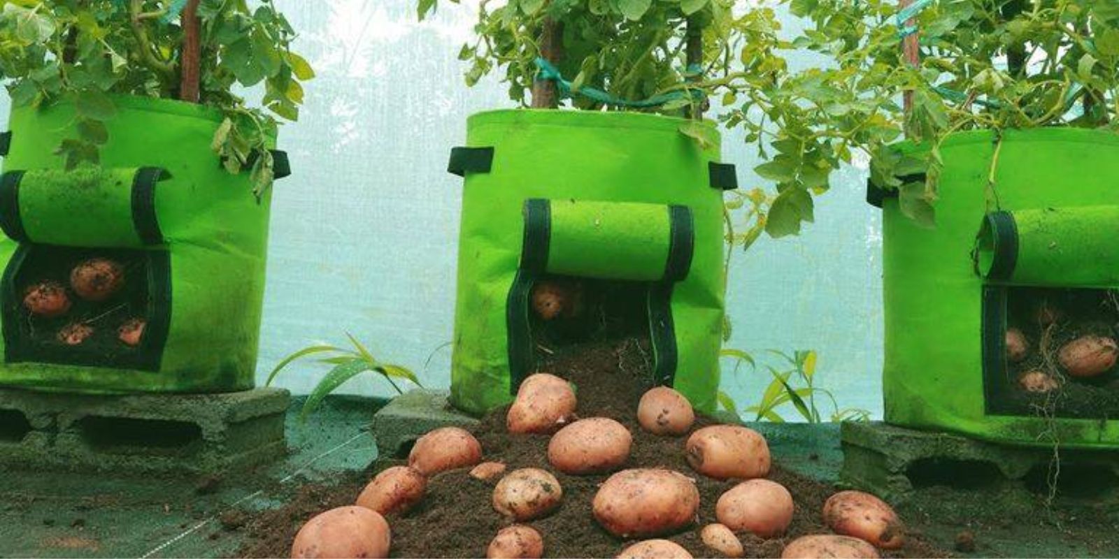 Kartoffeln können in aufeinander folgenden Säcken angebaut werden. Nach der Ernte können Sie die Erde in den Säcken aufbereiten und für die nächste Pflanzsaison verwenden.