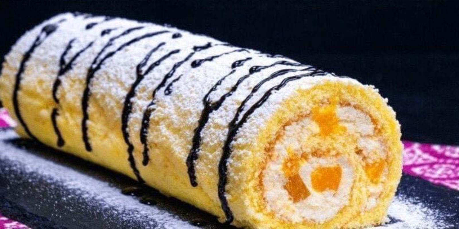 - Vor dem Servieren die Biskuitrolle optional mit Puderzucker bestäuben.