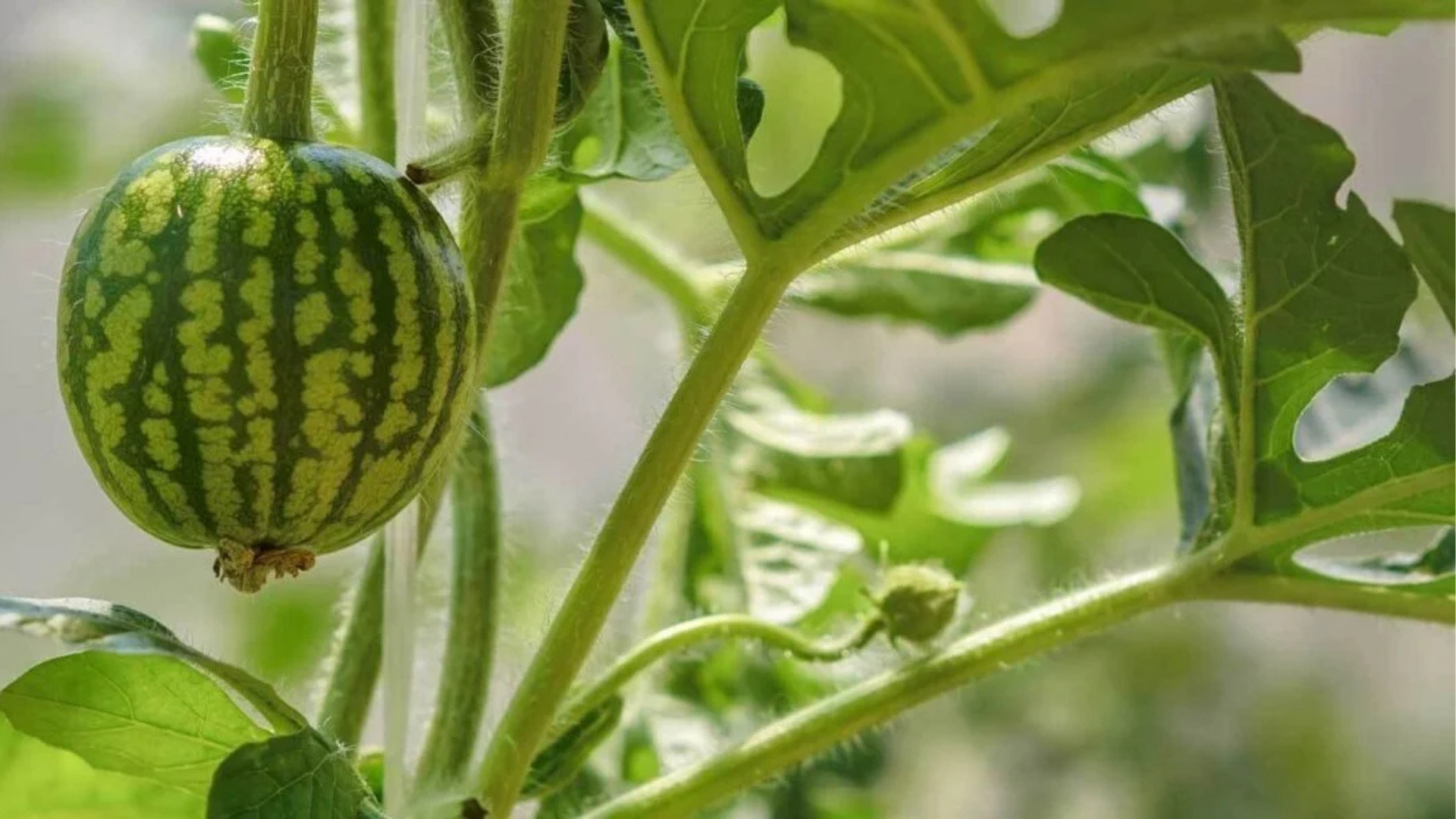 Im Gegensatz zu den großen Freiland-Sorten müssen Mini-Wassermelonen, die im Topf kultiviert werden, oft in die Höhe geleitet werden, um Platz zu sparen und die Früchte vor Fäulnis zu schützen.