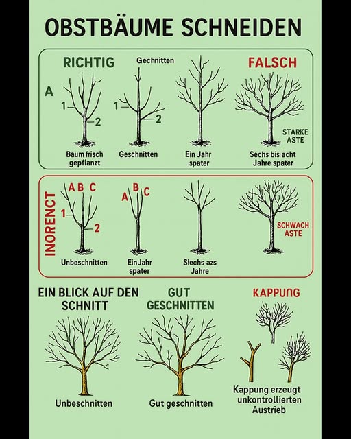 Fazit: Wer Obstbäume richtig schneidet, sorgt für gesunde Bäume, starke Äste und eine reiche Ernte. Mit etwas Übung wird der Schnitt schnell zur Routine – und die Früchte deines Gartens danken es dir jedes Jahr.