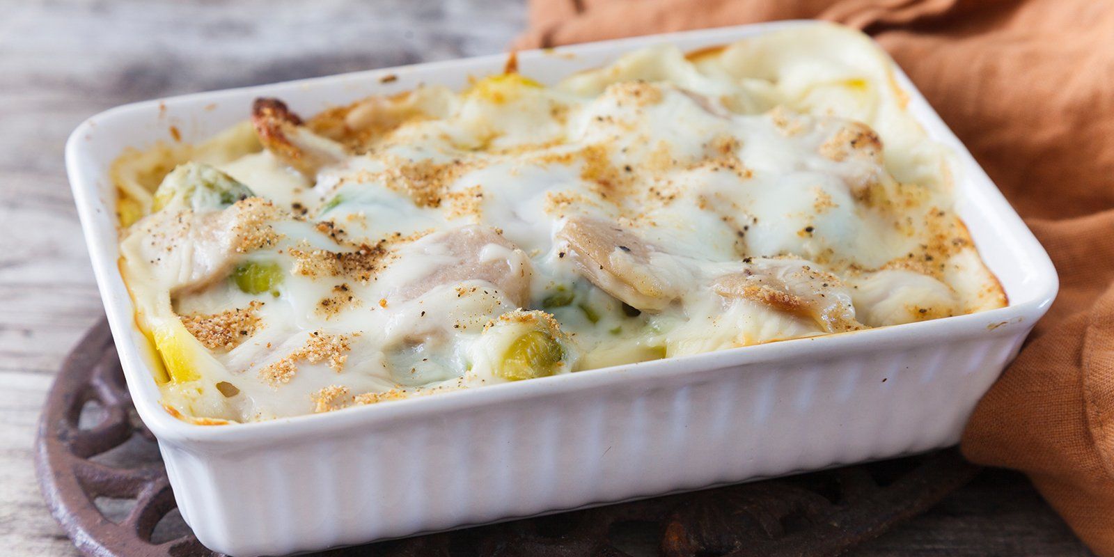 - Auflauf schichten: In einer leicht eingefetteten Auflaufform schichten Sie abwechselnd Rosenkohl, Kartoffelscheiben und die Käsesauce. Wiederholen Sie diesen Vorgang, bis alle Zutaten aufgebraucht sind. Stellen Sie sicher, dass die oberste Schicht mit einer großzügigen Menge Käsesauce bedeckt ist.