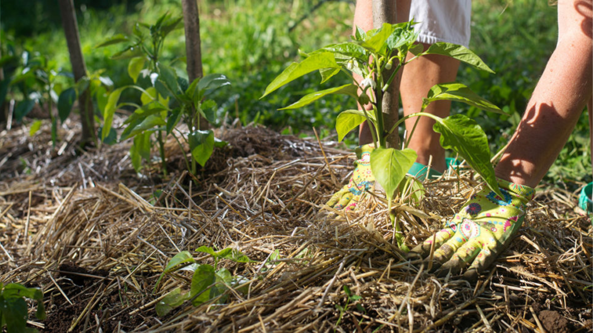 Eine dicke Mulchschicht schützt den Boden vor Austrocknung, verhindert Unkrautwuchs und liefert langsam Nährstoffe nach.