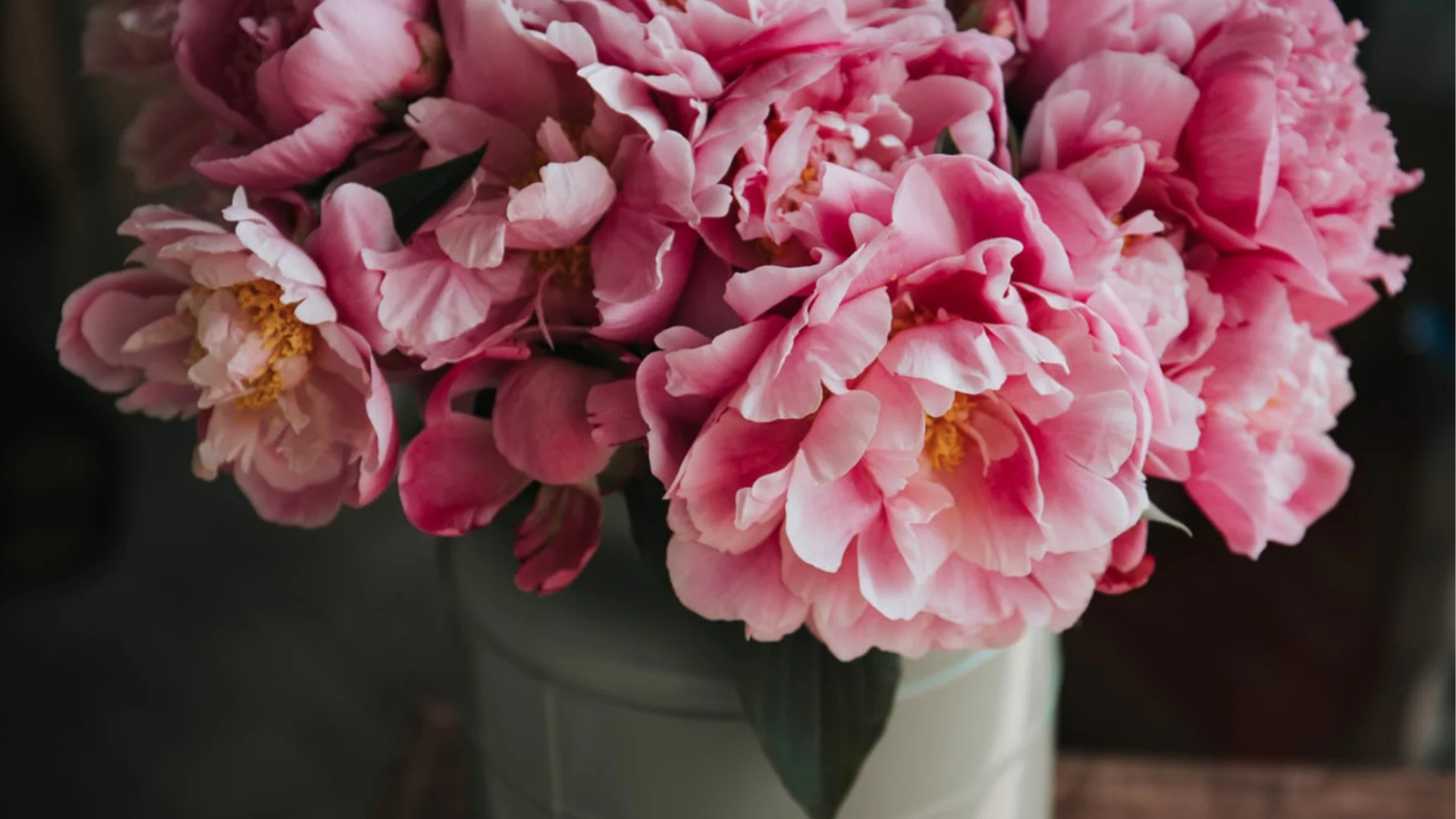 Pfingstrosen öffnen sich am schönsten in einem hellen, aber nicht sonnigen Raum. Wechsle das Wasser alle zwei Tage und schneide die Stiele leicht nach – so bleiben sie bis zu einer Woche prachtvoll.