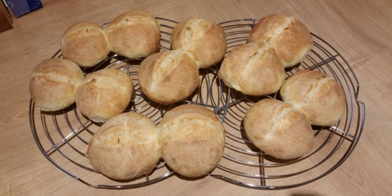 - Die Brötchen im vorgeheizten Ofen etwa 15-20 Minuten backen, bis sie goldbraun sind und hohl klingen, wenn man auf die Unterseite klopft.