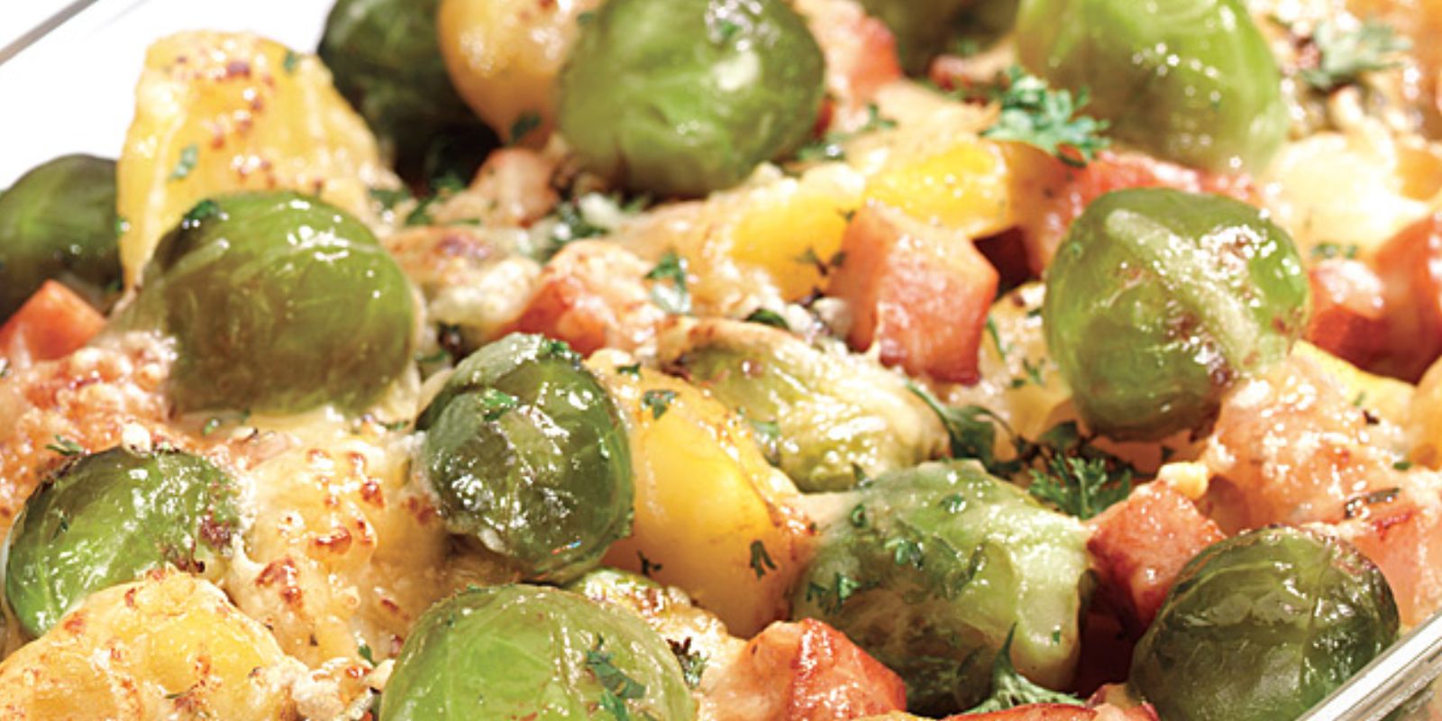 - Die Hälfte des vorgekochten Rosenkohls darauf verteilen.