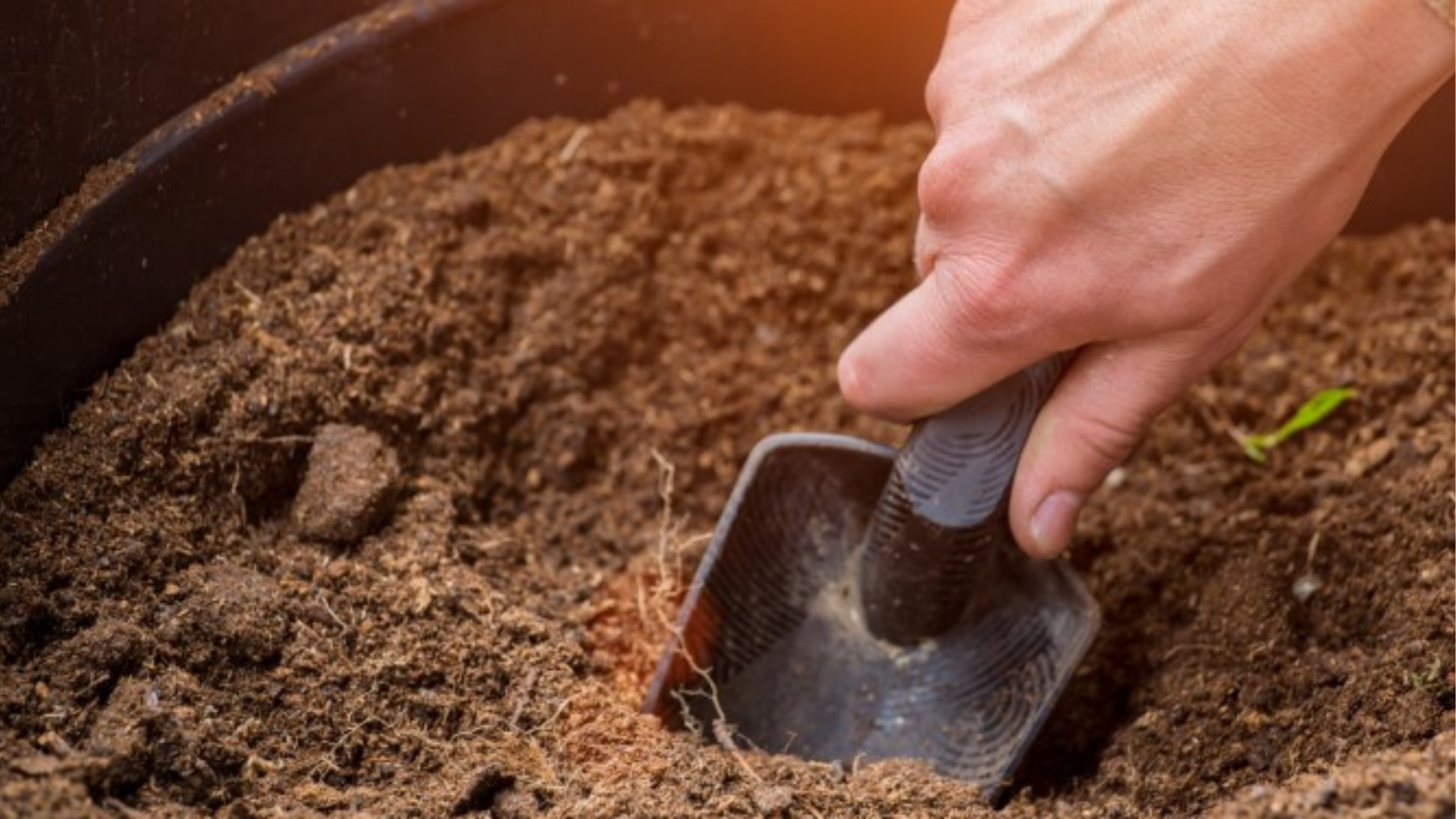 - Arbeite sie leicht in die oberste Bodenschicht ein.