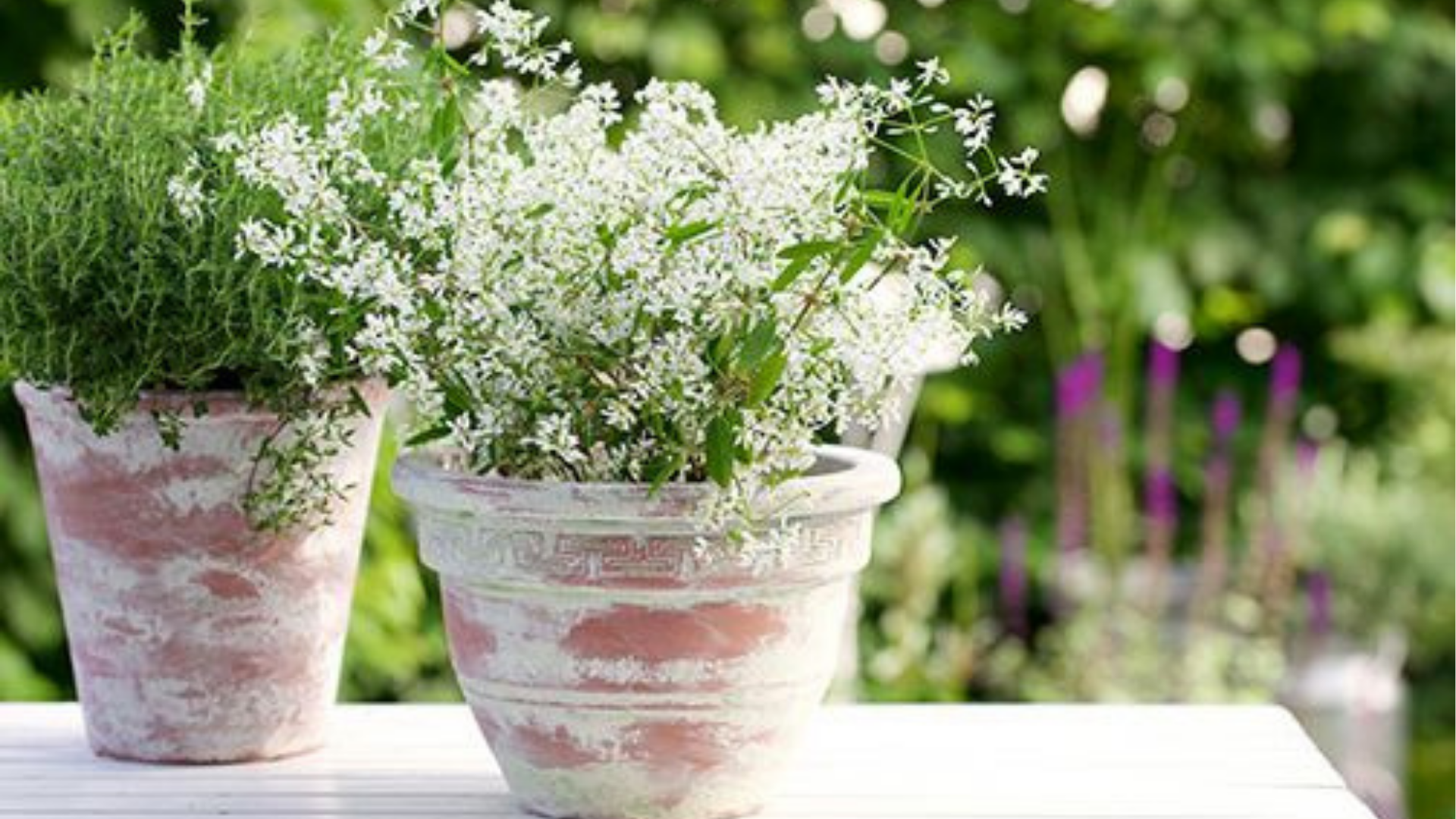 Töpfe mit Patina passen perfekt zu mediterranen Pflanzen. Besonders schön wirken: