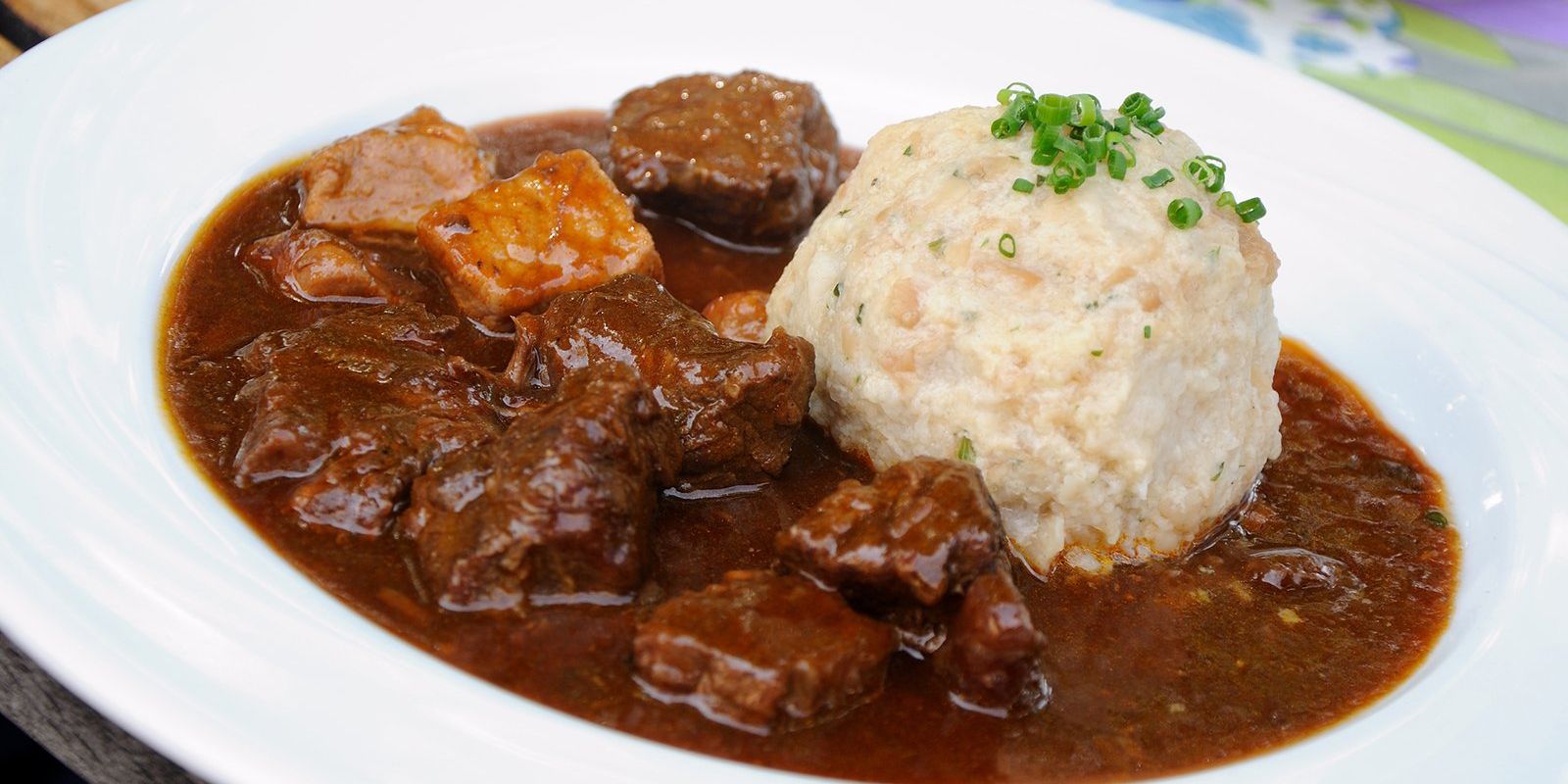 - Das Hirschgulasch in tiefen Tellern anrichten und mit Kartoffelklößen oder Brezenknödeln servieren.