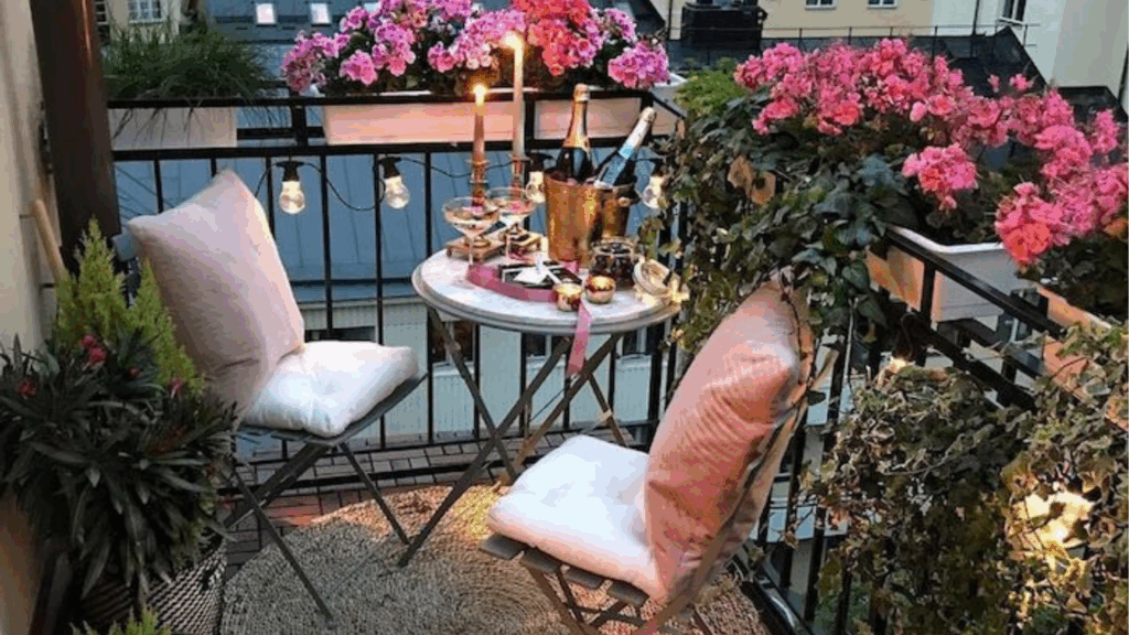 - Sitz- und Arbeitszone: Ein kleiner Klapptisch spart Platz und dient als Pflanzfläche.
