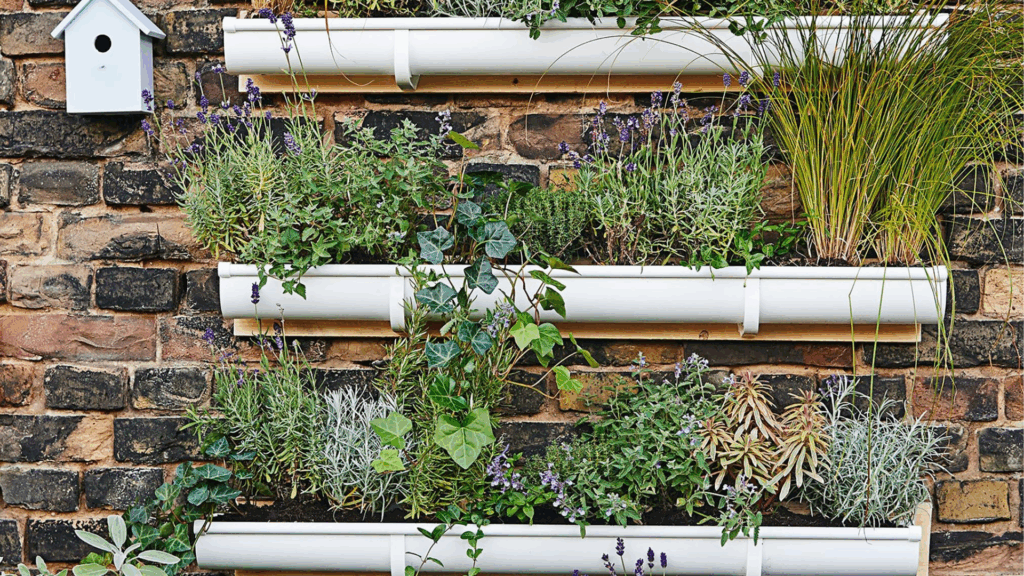 Alte oder günstige Kunststoff-Regenrinnen können horizontal an die Wand geschraubt werden.