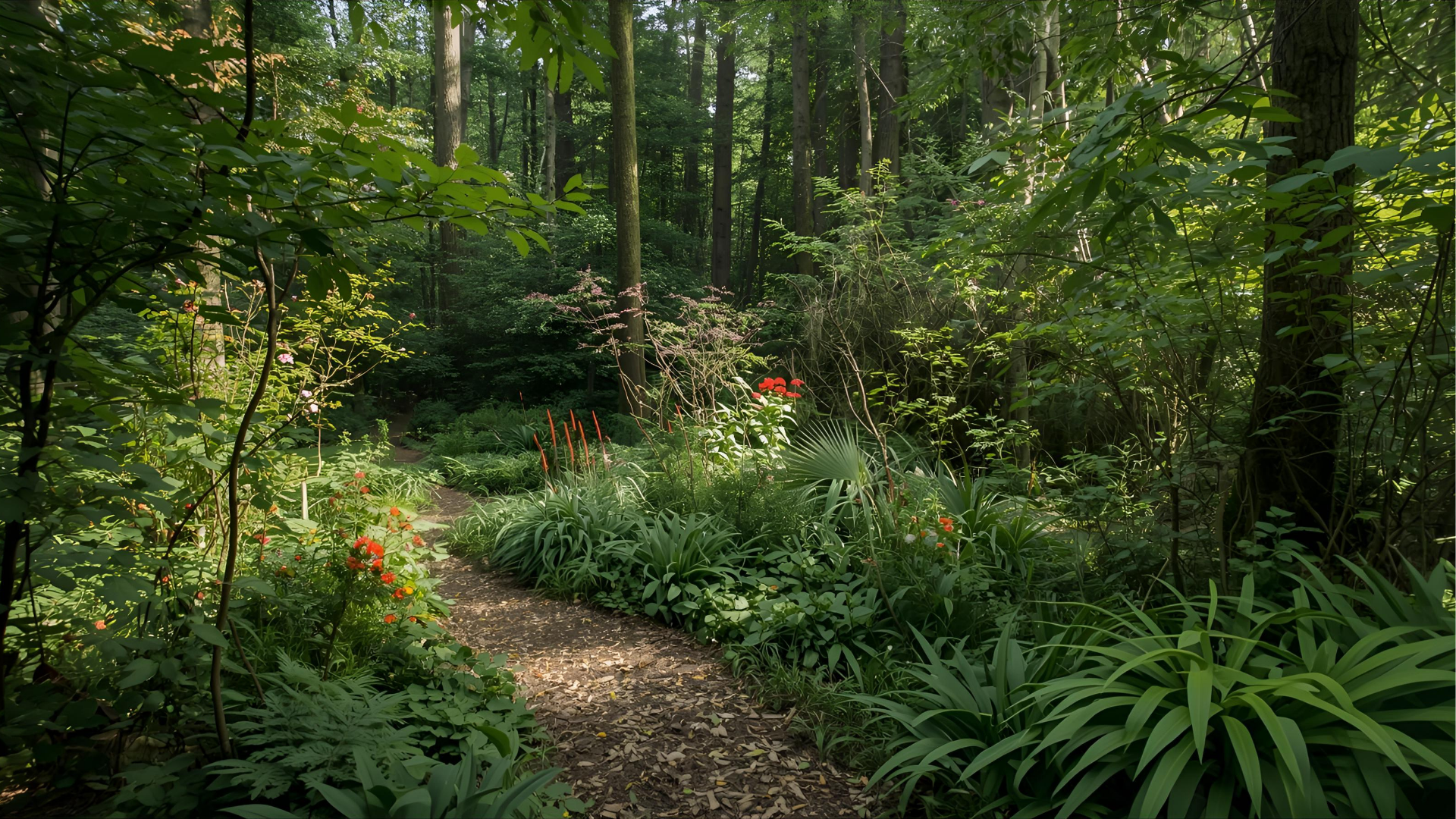 Ein Waldgarten ist wie ein Stück unberührte Natur im eigenen Zuhause – ruhig, grün und voller Leben.